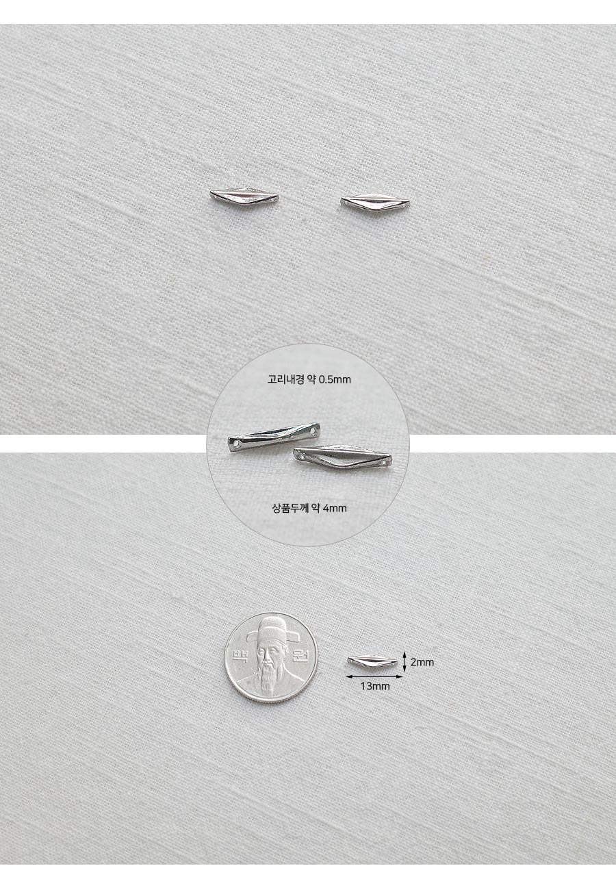 HOME > 팬던트 > 써지컬스틸 > [5-6610-15] 써지컬스틸 팬던트 양고리 길쭉마름모 13*2mm [50개]