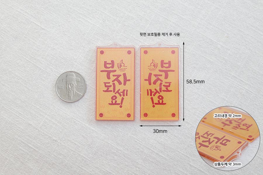HOME > 팬던트 > 아크릴 > 아크릴 > [5-4049-02] 팬던트 레진 전통 / 부자되세요 30*59.5mm [10개]