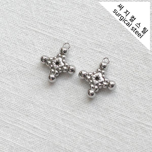 [5-6677-08] 써지컬스틸 팬던트 별 무늬 말 21*21.5mm [10개]