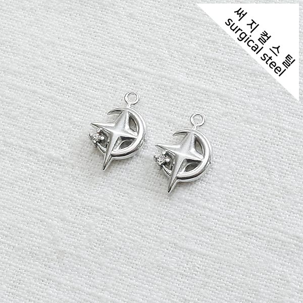 [5-6620-13] 써지컬스틸 팬던트 십자별빛&달 11*16mm [10개]