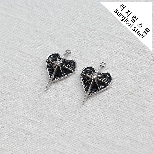 [5-6704-08] 써지컬스틸 팬던트 블랙 에폭 별빛 하트 13*19mm [10개]