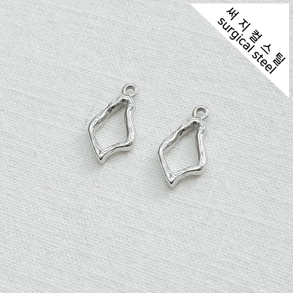 [5-6704-10] 써지컬스틸 팬던트 비정형 호일 마름모 12*21mm [10개]