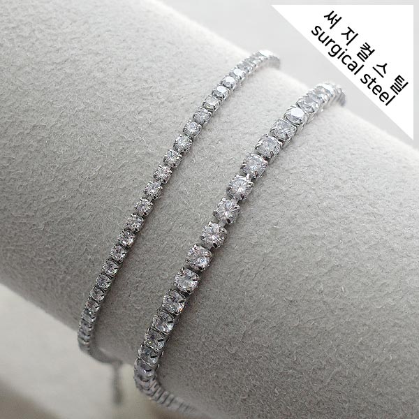 [8-8062-01] 써지컬스틸 큐빅 줄란(테니스) 팔찌 18+3cm [10개]