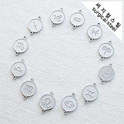 [5-6587-01] 써지컬스틸 팬던트 양고리 기호별자리/중 무도금 [10개]