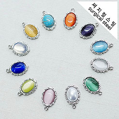 [5-6653-01] 써지컬스틸 팬던트 캣츠아이 공주거울 11*17mm [10개]