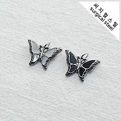 [5-6673-05] 써지컬스틸 팬던트 엔틱자개/블랙 나비 21*14.5mm [10개]
