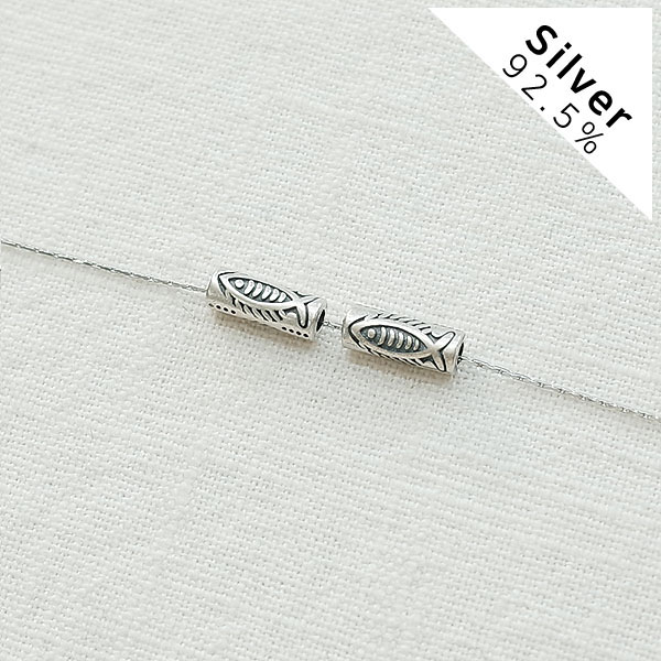 [7-0032-12] 은(silver) 통과형 원통 물고기화석 11*4mm 엔틱 실버925 [5개]