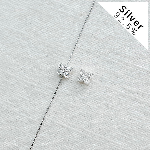 [7-0039-06] 은(silver) 통과형 민자&큐빅나비(양면) 6*4.5mm 무도금 실버925 [5개]