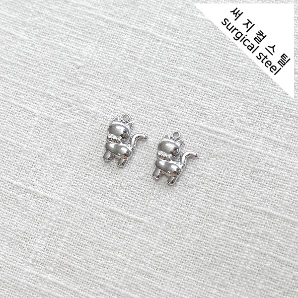 [5-6553-12] 써지컬스틸 팬던트 큐티 고양이 10*13mm [10개]