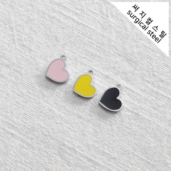 [5-6697-07] 써지컬스틸 팬던트 에폭 컬러 한쪽고리 하트 9*10.5mm [10개]