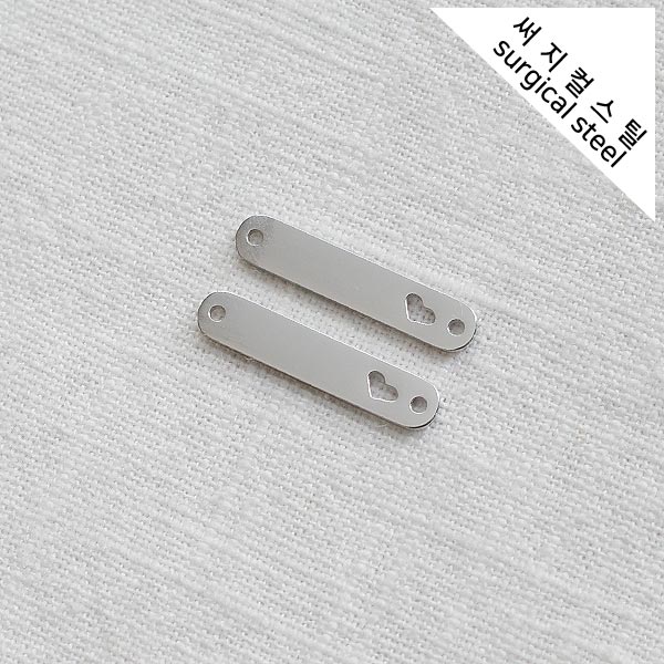 [5-6677-09] 써지컬스틸 팬던트 양고리 라운드 하트펀칭 바 23*4.5mm [10개]