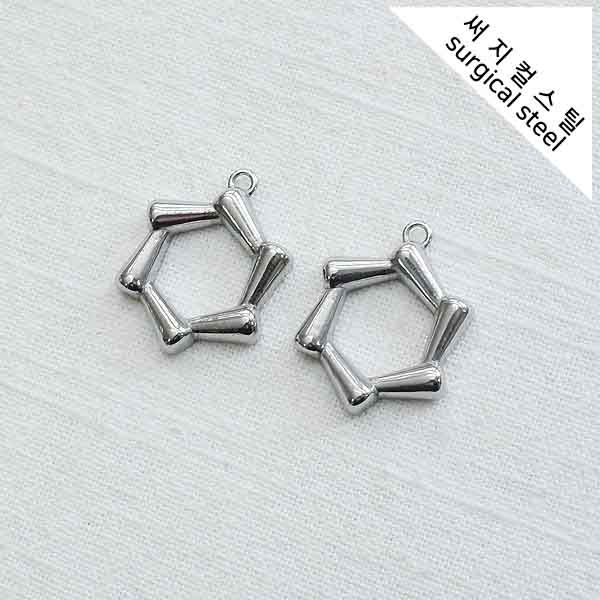 [5-6576-09] 써지컬스틸 팬던트 육각프레임 회오리 19.5*25mm [10개]