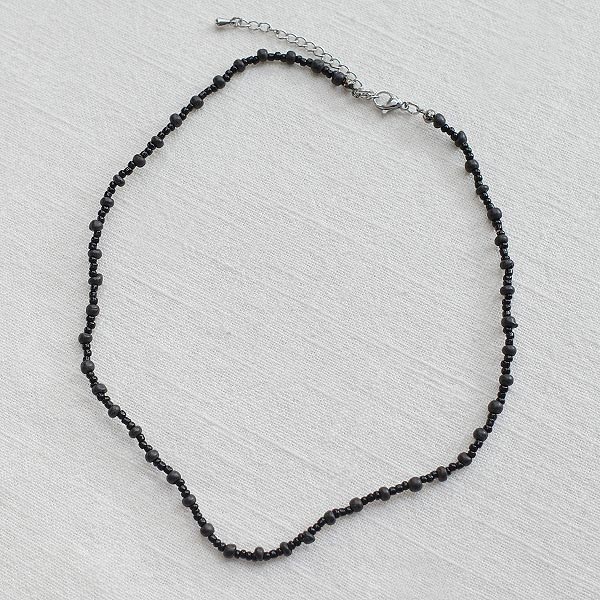 [8-7037-02] 2MM 비즈 목걸이줄 / 블랙 42+5cm [10개]