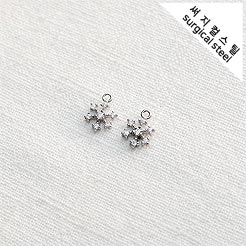 [5-6580-04] 써지컬스틸 팬던트 큐빅눈꽃 8*10mm [10개]