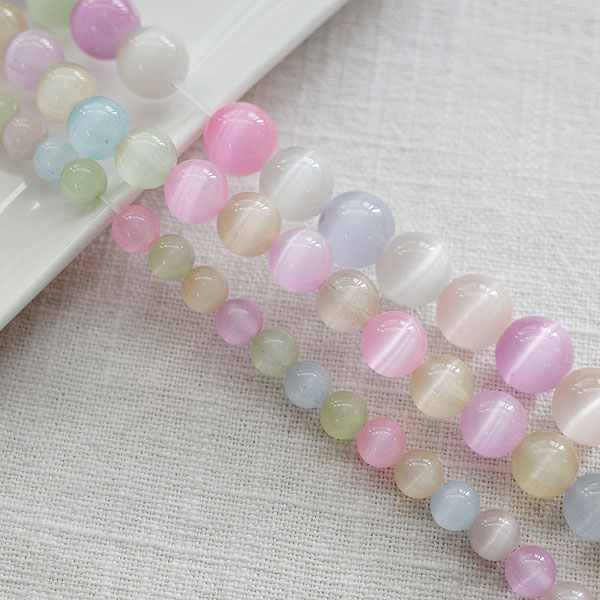 [4-1036-02] 원석 6~10mm 웜파스텔 캣츠아이