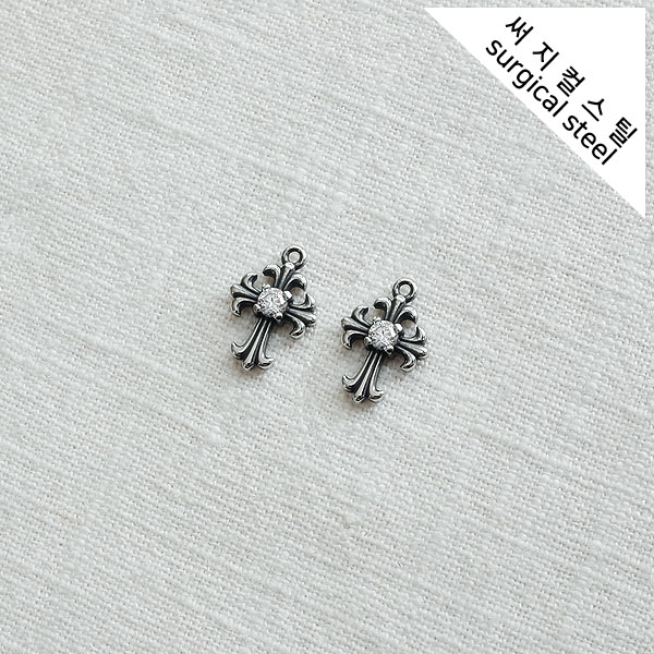 [5-6602-13] 써지컬스틸 팬던트 미니 큐빅 십자가 6.5*10.5mm [10개]
