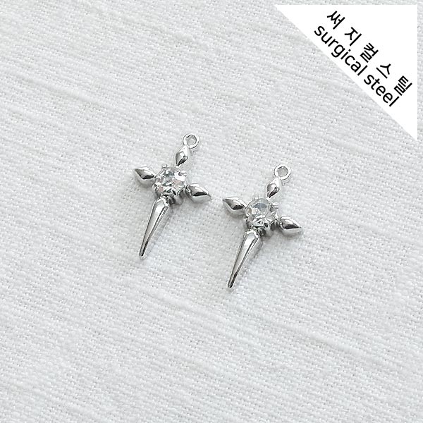 [5-6623-09] 써지컬스틸 팬던트 큐빅포인트 뾰족십자가 12.5*20.5mm [10개]