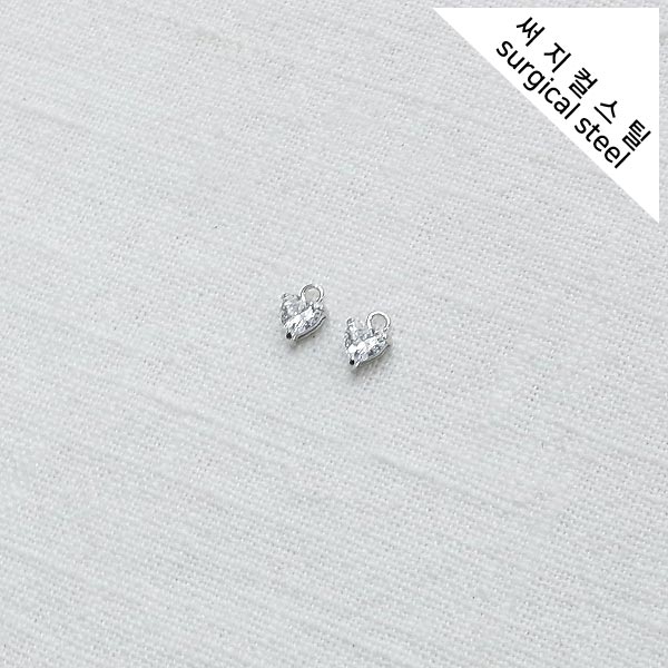 [5-6632-03] 써지컬스틸 팬던트 미니 큐빅 난집하트 5*7mm [10개]