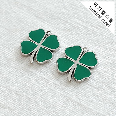 [5-6563-07] 써지컬스틸 팬던트 네잎클로버(고리땜) 15.5*16mm [10개]