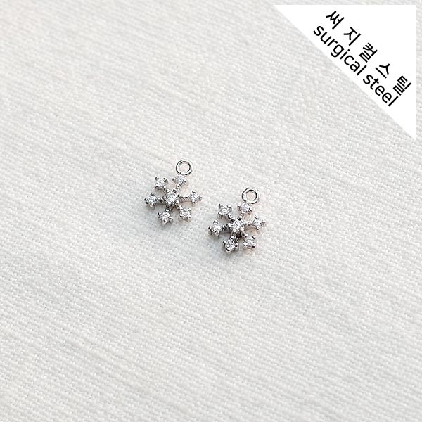 [5-6580-04] 써지컬스틸 팬던트 큐빅눈꽃 8*10mm [10개]