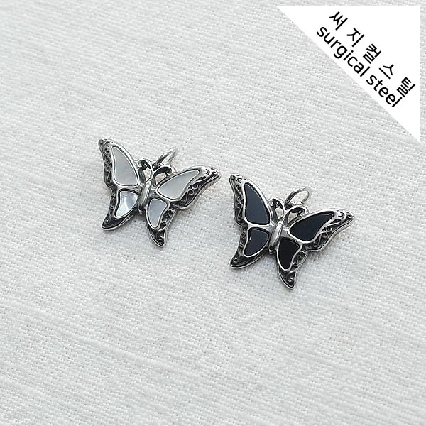 [5-6673-05] 써지컬스틸 팬던트 엔틱자개/블랙 나비 21*14.5mm [10개]