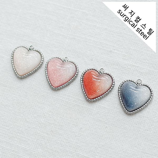 [5-6734-01] 써지컬스틸 팬던트 그라데이션펄 볼록 도트하트 16.5*17.5mm [10개]