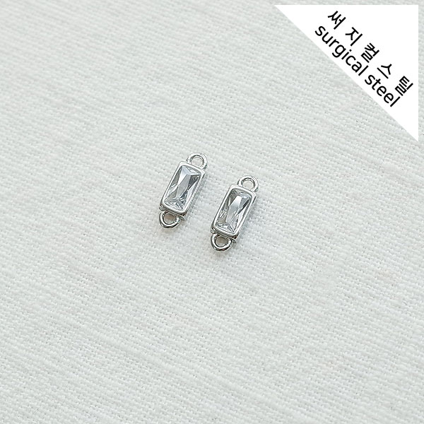 [5-6775-04] 써지컬스틸 팬던트 양고리 큐빅 민자직사각 4.5*12mm [10개]