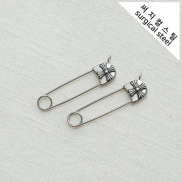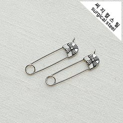 [5-6695-02] 써지컬스틸 팬던트 크롬 한쪽고리 옷핀 8*34mm [10개]