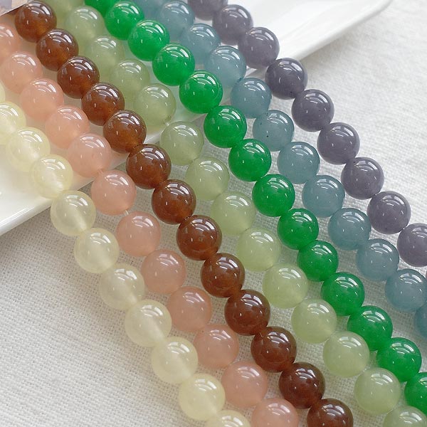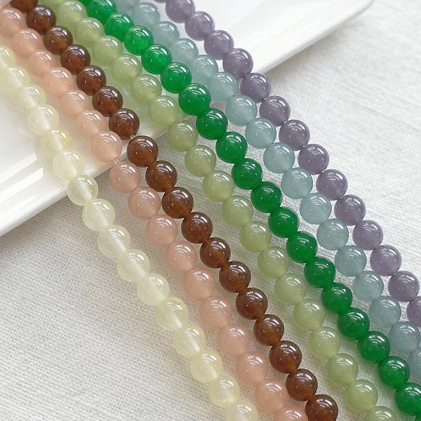 [4-0507] 원석 6.5mm 신백옥 (천연/착색) [3줄(약180개)]