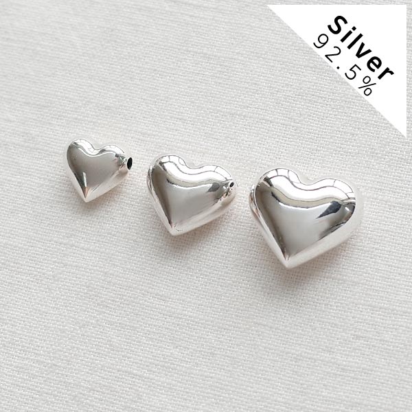 [7-0007-07] 은(silver) 통과형 넓적볼륨 하트 무도금 소/대 실버925 [5개]