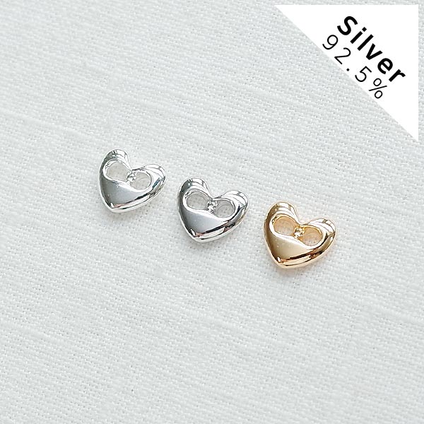 [7-0025-13] 은(silver) 단추하트 11*9.5mm 실버925 [3개]