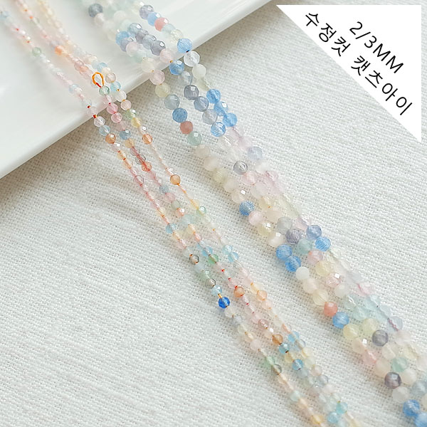 [2-601-02] 크리스탈 2,3mm 수정컷 캣츠아이 / 파스텔믹스 [3줄]