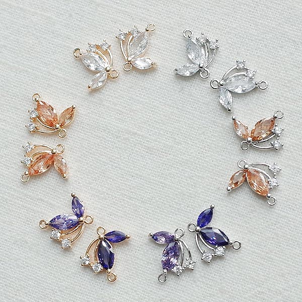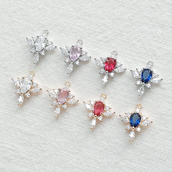 [5-2014-03] 팬던트 양고리 마름모 꽃잎큐빅 7.5*16.5mm [10개]