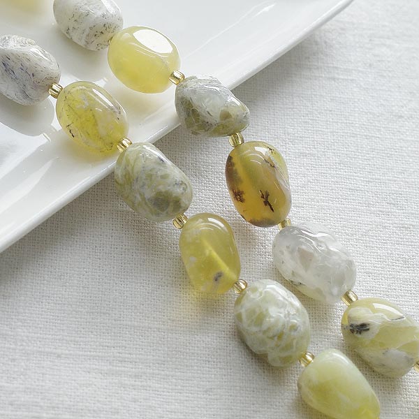 [4-0062-01] 너겟 천연원석/옐로우오팔 [2줄(약42개)]