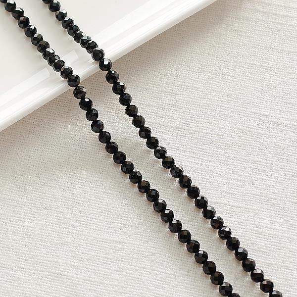 [4-0010-08] 컷팅 천연원석/블랙트루마린 3~3.5mm [2줄(약240개)]