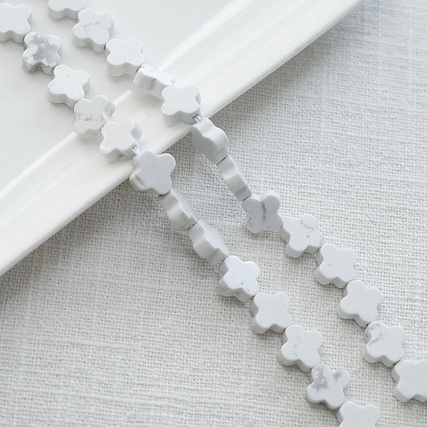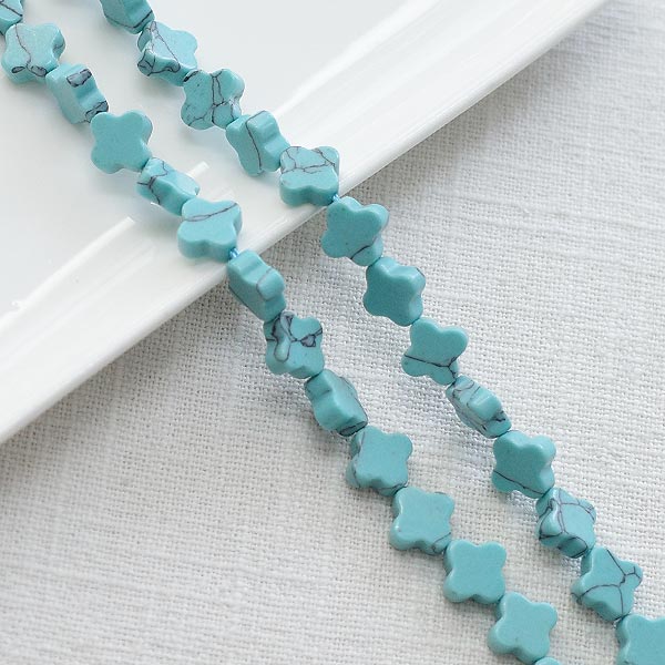 [4-9807-03] 원석 플랫클로버 / 터키석 8mm [2줄(약92개)]