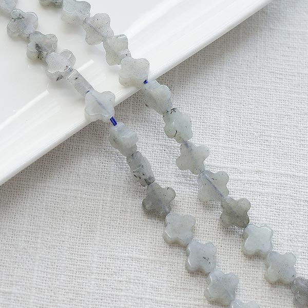 [4-9807-02] 원석 플랫클로버 / 래브라도라이트 8mm [2줄(약92개)]