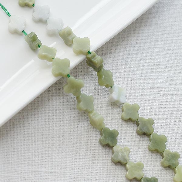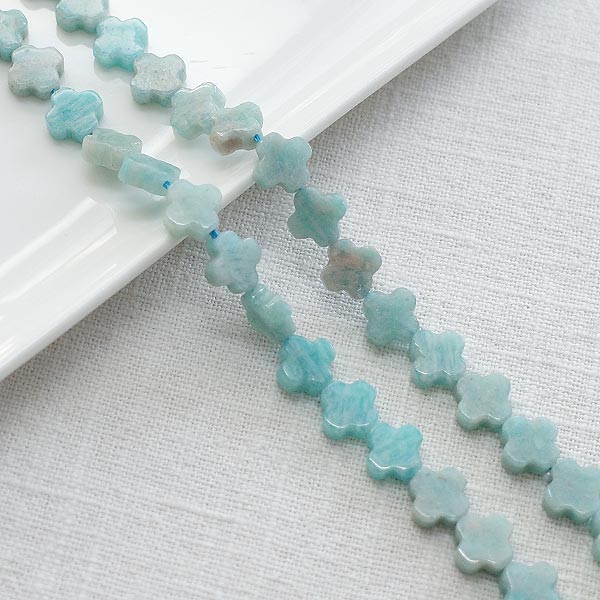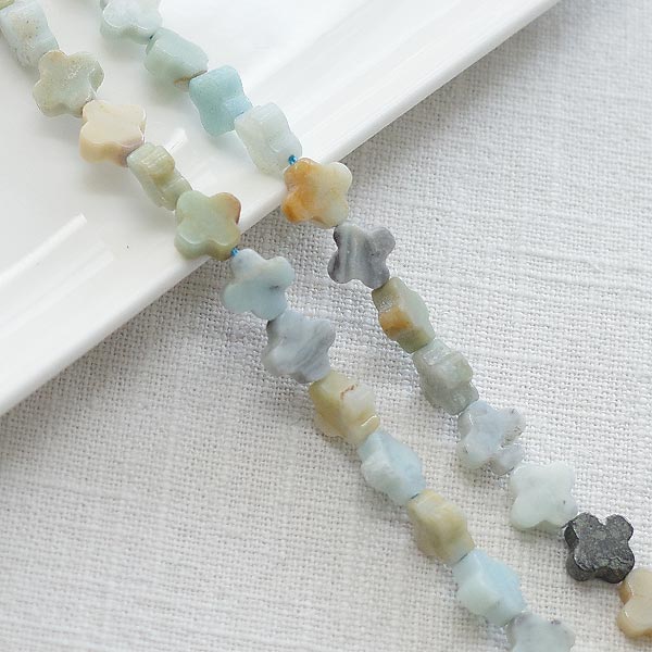 [4-9807-11] 원석 플랫클로버 / 연한 아마조나이트 8mm [2줄(약92개)]