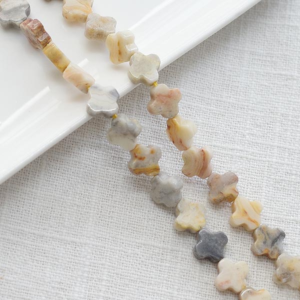 [4-9807-06] 원석 플랫클로버 / 크레이지아게이트 8mm [2줄(약92개)]