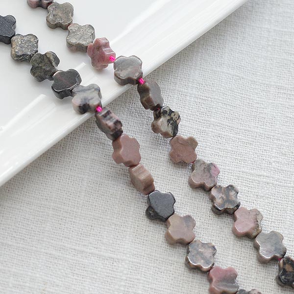 [4-9807-07] 원석 플랫클로버 / 로도나이트 8mm [2줄(약92개)]