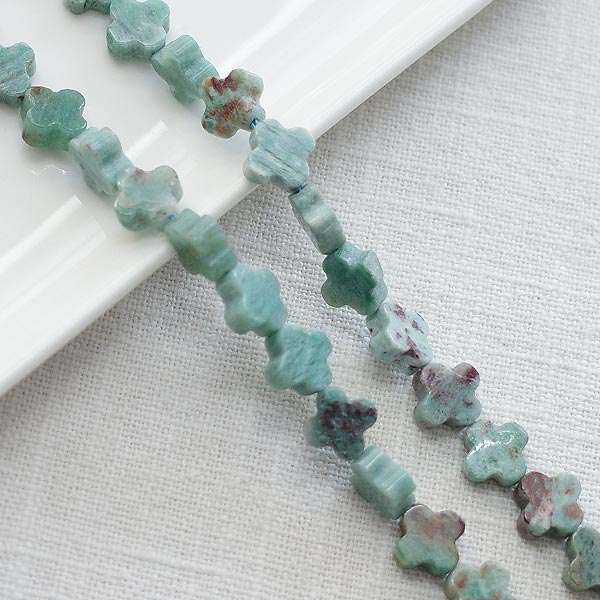 [4-9807-09] 원석 플랫클로버 / 진한 아마조나이트 8mm [2줄(약92개)]