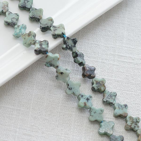 [4-9807-10] 원석 플랫클로버 / 아프리칸터키석 8mm [2줄(약92개)]