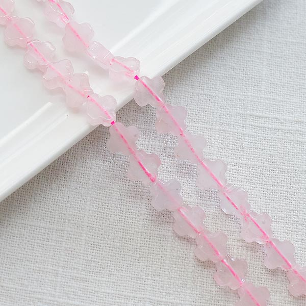 [4-9807-12] 원석 플랫클로버 / 장미석 8mm [2줄(약92개)]
