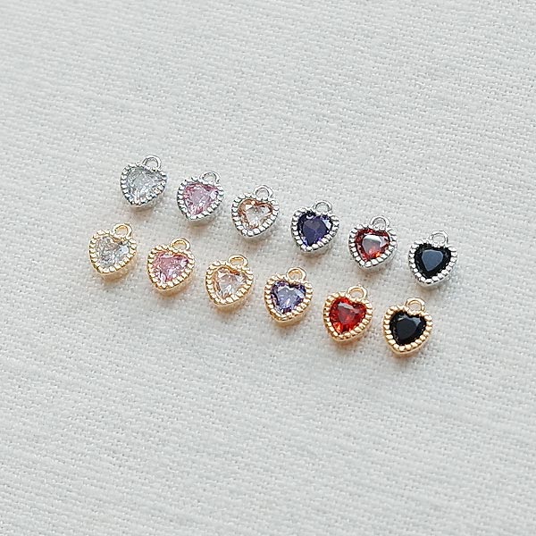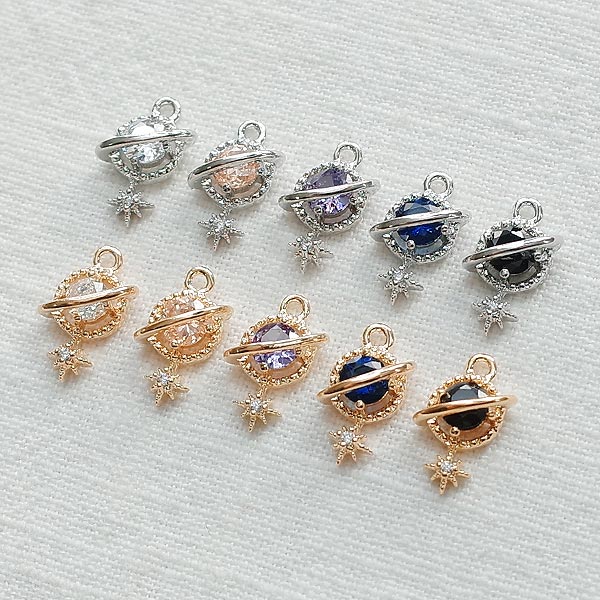 [5-1031-03] 팬던트 큐빅 행성라인 별빛 하트 / 소 10.5*8mm [10개]