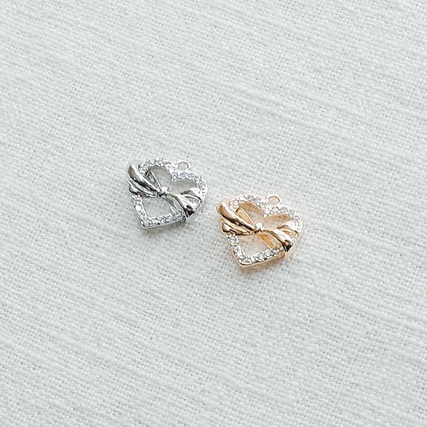 [5-1532-07] 팬던트 큐빅 프레임하트 리본장식 13*12mm [10개]