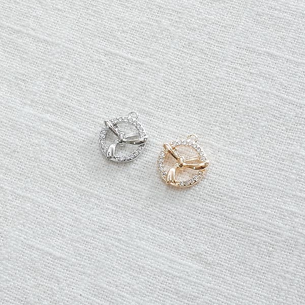 [5-1532-06] 팬던트 큐빅매듭 줄 리본 14*19.5mm [10개]