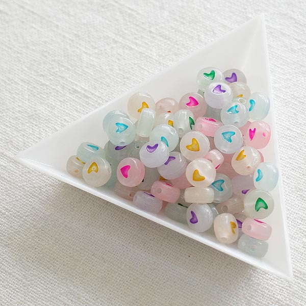 [5-7052-00] 팬던트 아크릴 반투명컬러/야광 (하트) 7.5mm [50g(약370개)]