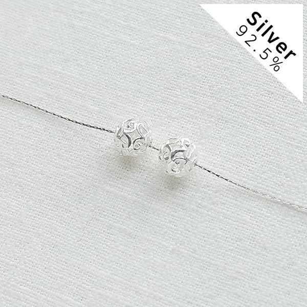 [7-2010-13] 은(silver) 통과형 무늬프레임 볼 8mm 무도금 실버925 [5개]