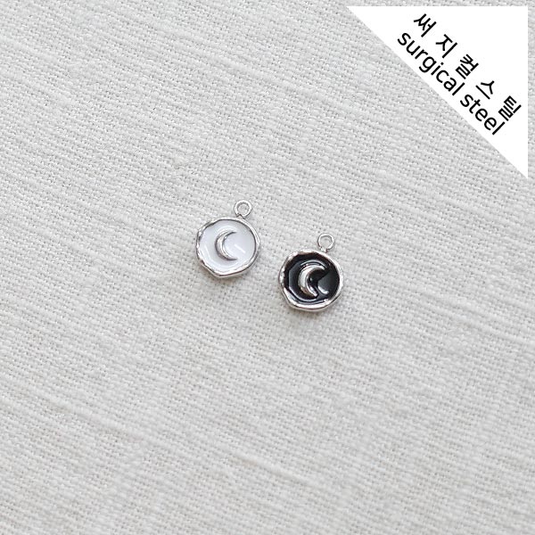 [5-6550-11] 써지컬스틸 팬던트 에폭 미니코인 / 달 8*10.5mm [10개]
