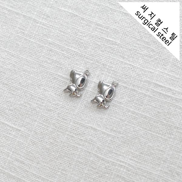 [5-6553-12] 써지컬스틸 팬던트 큐티 고양이 10*13mm [10개]